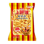 Ingredients:wheat flour, vegetable oil, starch, shrimp (5.50%), seasoning (sugar, edible salt, MSG, food additives: disodium 5'-present nucleotide, silicon dioxide), food additives (monostearic acid glycerides, carmine, gardenia yellow).Allergen information: contains wheat and...
